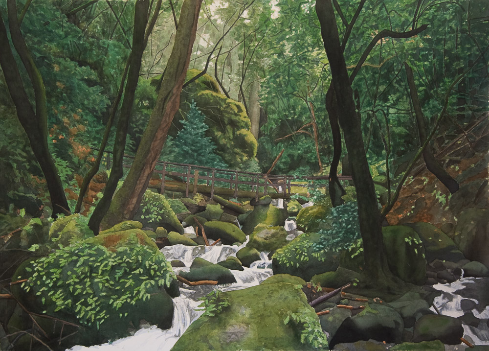 This was my first painting done after my long career detour. I had hiked through here many times, and it seemed a natural first friend to paint.